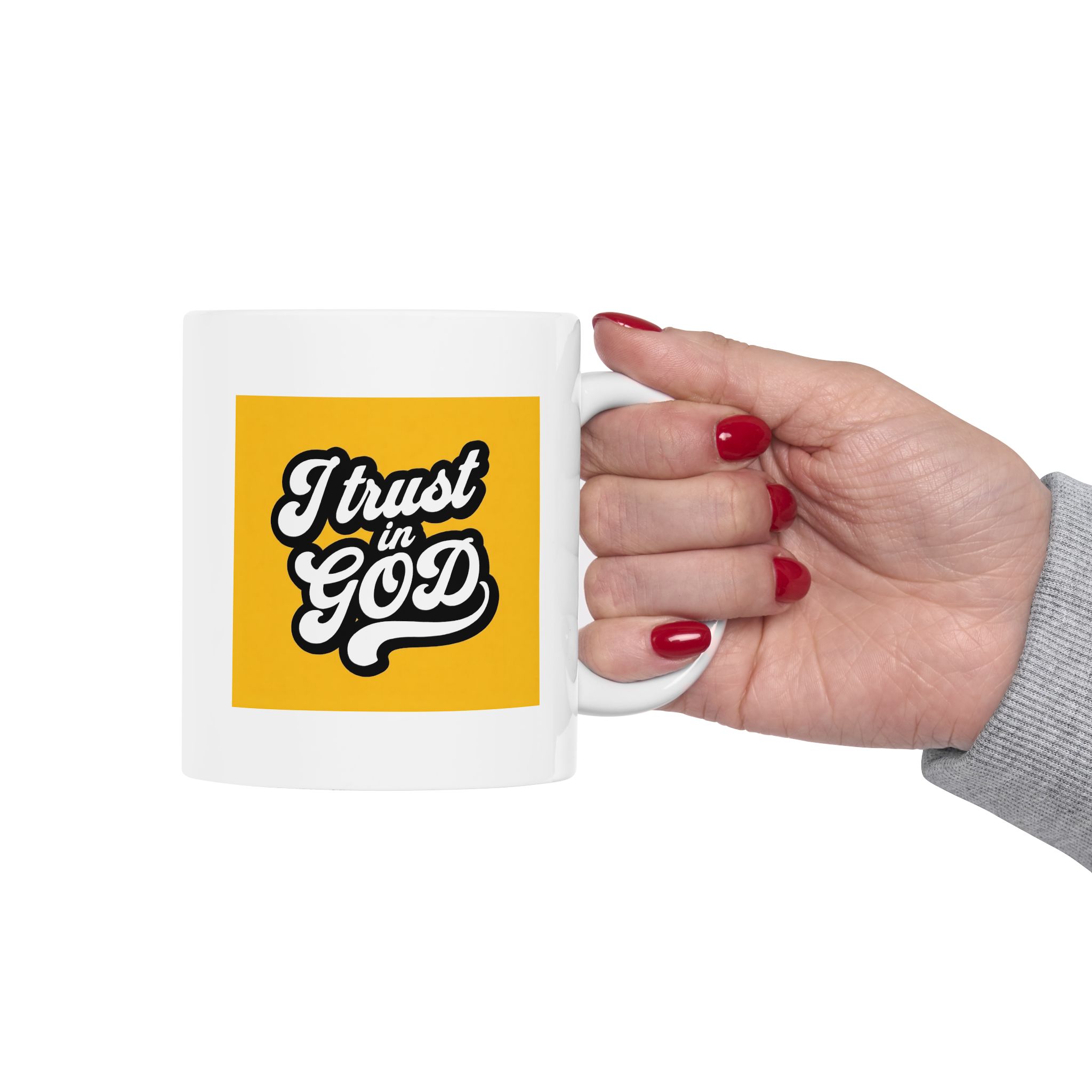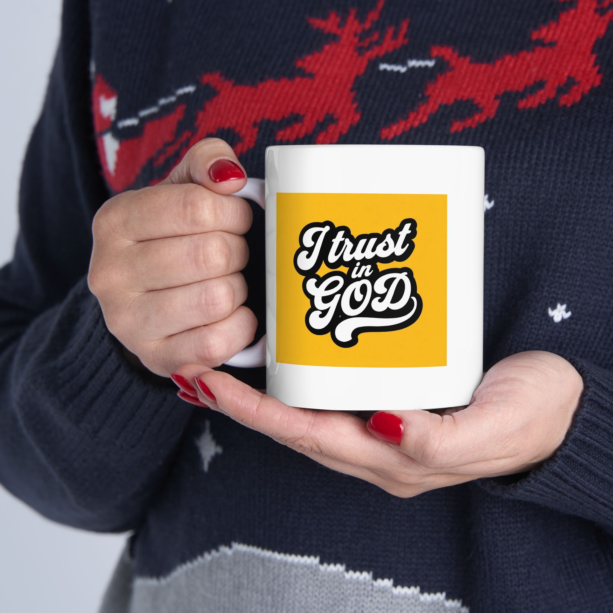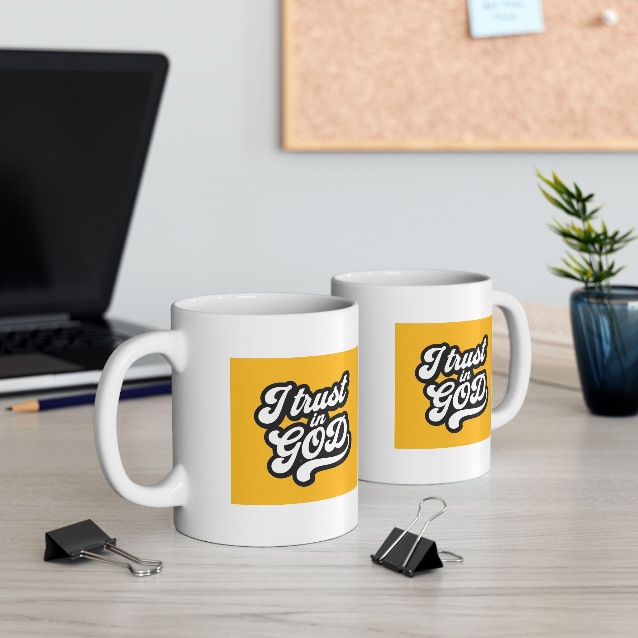 This glossy ceramic mug brings a warm, cheerful presence to morning routines and late-night work sessions. The bold block of mustard-yellow and playful script peek through on both sides, giving a pop of color that lifts your countertop or desk. Smooth, shiny finish catches the light while the comfortable C-handle keeps every sip steady. Built to stand up to everyday use, the mug’s vibrant print stays bright through microwaving and dishwasher cycles, so the design remains part of your daily rhythm. Lead- and BPA-free for safe sipping, available in two sizes to match small coffee comforts or generous refills.